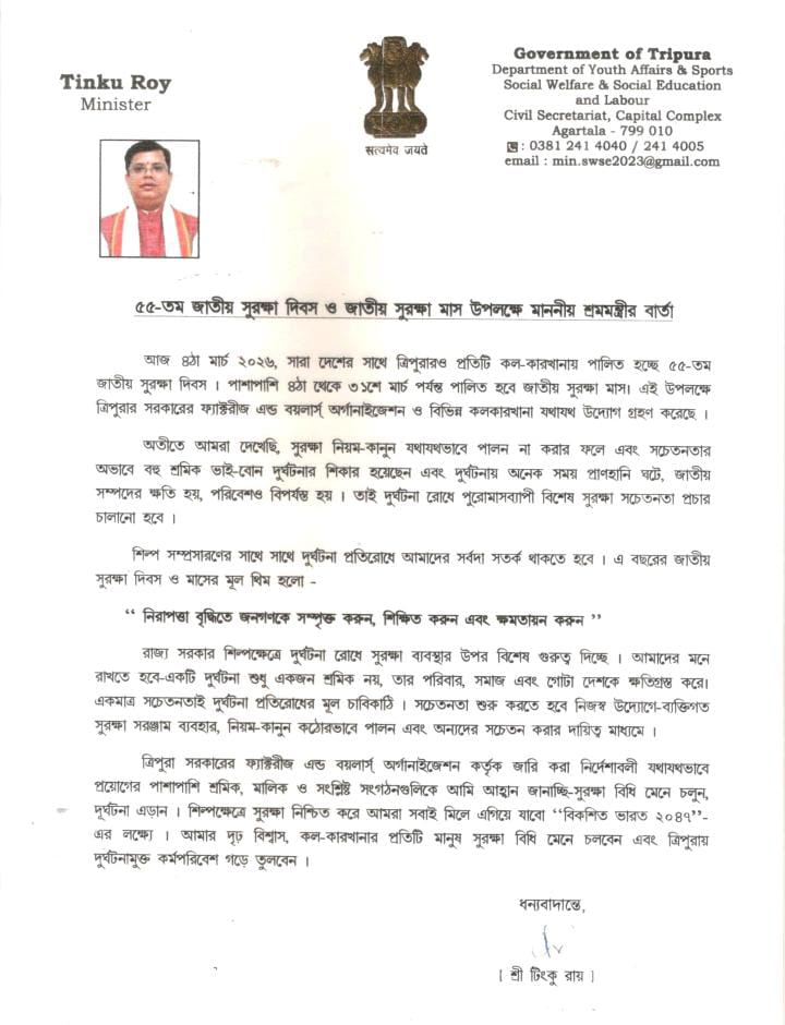 জনতার কলম ত্রিপুরা আগরতলা প্রতিনিধি :- জাতীয় নিরাপত্তা ও আঞ্চলিক অখণ্ডতা রক্ষায় ত্রিপুরার.