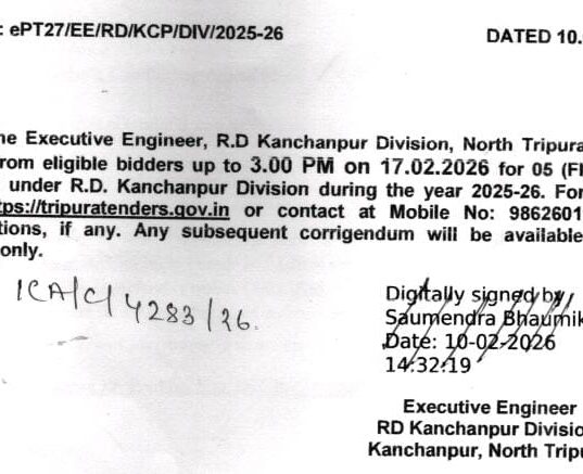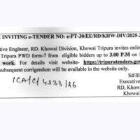 জনতার কলম ত্রিপুরা আগরতলা প্রতিনিধি :- আগরতলার বড়দোয়ালি মিলন সংঘ এলাকায় শনিবার সকালে.