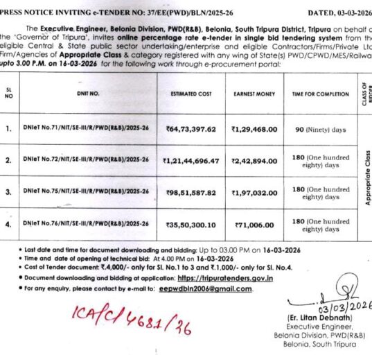 জনতার কলম ত্রিপুরা আগরতলা প্রতিনিধি :- রাজ্যে পেট্রোল, ডিজেল ও জ্বালানি গ্যাসের পর্যাপ্ত মজুত রয়েছে বলে জানিয়েছেন খাদ্যমন্ত্রী সুশান্ত চৌধুরী। সামাজিক মাধ্যমে প্রকাশিত এক বার্তায় তিনি রাজ্যের সকল অংশের মানুষকে আশ্বস্ত করে বলেন, বর্তমান.