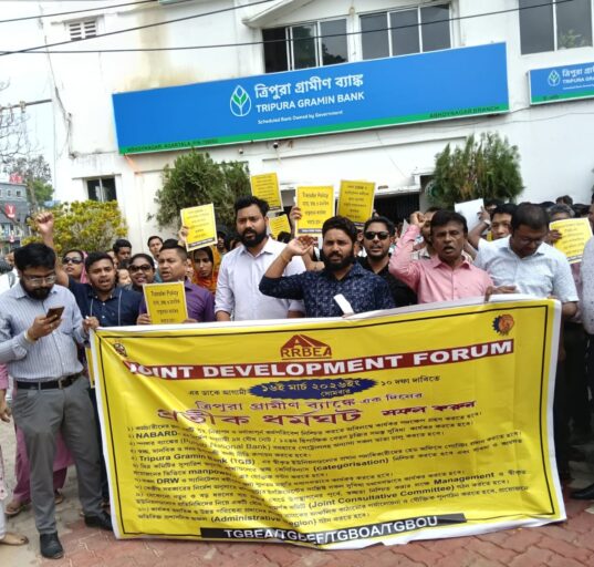 ১০ দফা দাবিতে ত্রিপুরা গ্রামীণ ব্যাঙ্কের কর্মী ও আধিকারিকদের