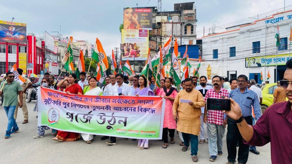 আগরতলা পুরনিগমের অপরিকল্পিত কাজের বিরুদ্ধে কংগ্রেসের মিছিল ও বিক্ষোভ