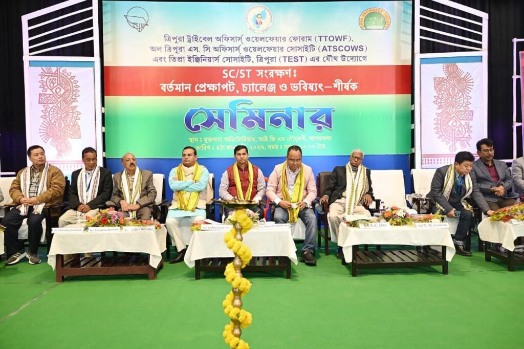 জনতার কলম ত্রিপুরা আগরতলা প্রতিনিধি :- “এসসি/এসটি সংরক্ষণ: বর্তমান প্রেক্ষাপট, চ্যালেঞ্জ ও আগামীর পথ” শীর্ষক এক গুরুত্বপূর্ণ সেমিনার রবিবার আগরতলার মুক্তধারা অডিটোরিয়ামে অনুষ্ঠিত হয়। যৌথভাবে এই সেমিনারের আয়োজন করে ত্রিপুরা ট্রাইবাল অফিসার্স ওয়েলফেয়ার ফোরাম (TTOWF), অল ত্রিপুরা এসসি অফিসার্স ওয়েলফেয়ার সোসাইটি এবং টিপরা ইঞ্জিনিয়ার্স সোসাইটি।