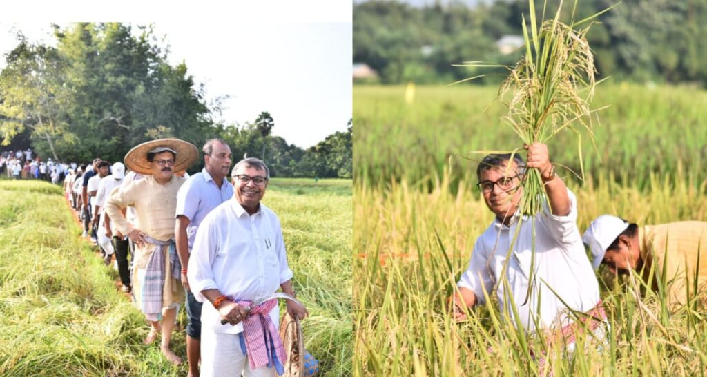 শুক্রবার পশ্চিম জেলার লঙ্কামুরায় কৃষক বিষ্ণুপদ অধিকারীর ধানক্ষেত পরিদর্শন করেন কৃষিমন্ত্রী। সেখানে তিনি কৃষকদের সঙ্গে ধান কাটার কাজেও অংশ নেন।