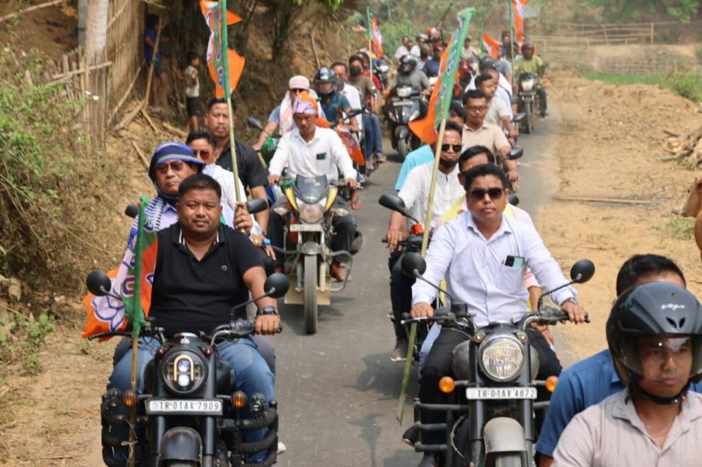 জনতার কলম ত্রিপুরা আগরতলা প্রতিনিধি :- আসন্ন স্বশাসিত জেলা পরিষদ (এডিসি) ভিলেজ নির্বাচনকে সামনে রেখে গোলাঘাটি মন্ডলের উদ্যোগে আয়োজিত এক বর্ণাঢ্য বাইক র্যালিতে জনজাতি এলাকার মানুষের স্বতঃস্ফূর্ত অংশগ্রহণ ও উচ্ছ্বাস চোখে পড়ার মতো ছিল।