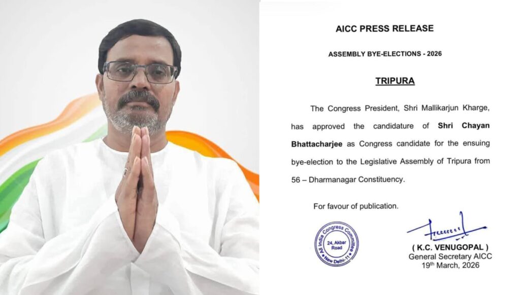 অন্যদিকে, প্রদেশ কংগ্রেসও আর দেরি না করে নিজেদের প্রার্থী হিসেবে চয়ন ভট্টাচার্যের নাম ঘোষণা করেছে। সর্বভারতীয় কংগ্রেস কমিটির অনুমোদন পাওয়ার পরই তার নাম চূড়ান্ত করা হয়। ফলে ধর্মনগর আসনে সরাসরি বিজেপি ও কংগ্রেসের মধ্যে লড়াইয়ের ইঙ্গিত স্পষ্ট হয়ে উঠেছে।