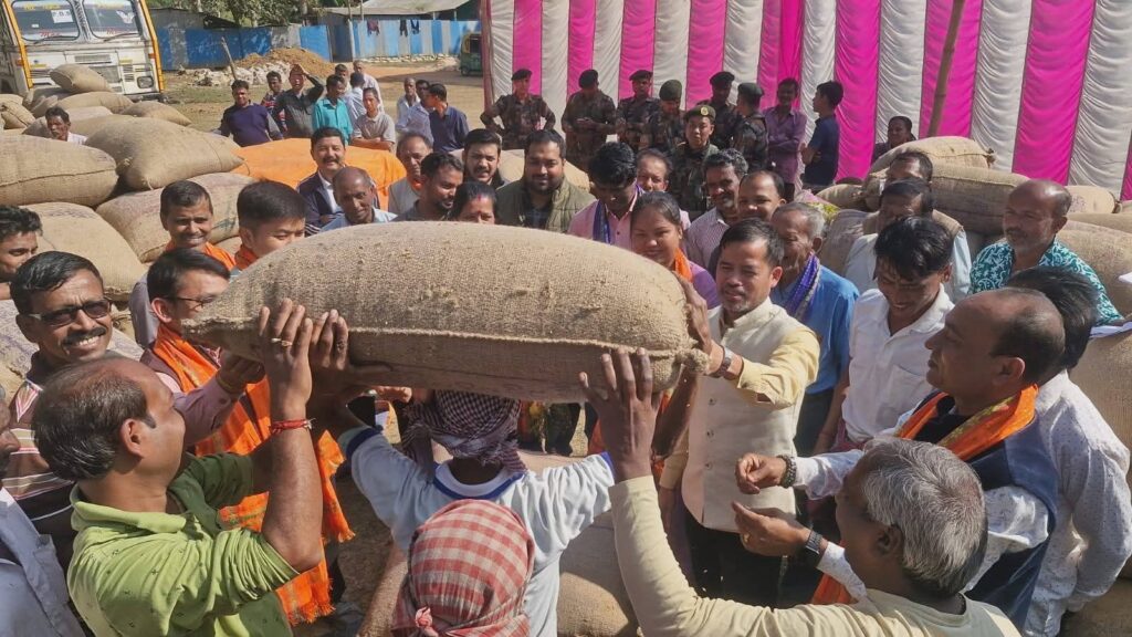 জনতার কলম ত্রিপুরা আগরতলা প্রতিনিধি :- খাদ্য, জনসংভরণ ও ক্রেতাস্বার্থ বিষয়ক এবং কৃষি ও কৃষক কল্যাণ দপ্তরের উদ্যোগে আজ থেকে শান্তিরবাজার মহকুমার বেতাগা এগ্রি গোডাউন মাঠে কৃষকদের কাছ থেকে সরকারি সহায়ক মূল্যে ধান কেনার কাজ শুরু হয়েছে। সমবায়মন্ত্রী শুক্লাচরণ নোয়াতিয়া আনুষ্ঠানিকভাবে ধান ক্রয়ের সূচনা করেন। বেতাগা এগ্রি গোডাউন মাঠে কৃষক সমাবেশে সমবায়মন্ত্রী বলেন, কৃষকরা হলেন অন্নদাতা, তাই ভগবান সমতুল্য কৃষকদের মর্যাদা ও সম্মান দিয়েছে বর্তমান সরকার। কৃষকরা যাতে উৎপাদিত ফসলের ন্যায্য মূল্য পান সে উদ্দেশ্যে সরকার সহায়ক মূল্যে ধান ক্রয়ের ব্যবস্থা করেছে। কৃষকদের আয় দ্বিগুণ করা সরকারের প্রধান লক্ষ্য। সেই লক্ষ্যে পৌঁছানোর জন্য সরকার থেকে কৃষকদের হাতে আধুনিক কৃষি যন্ত্রপাতি,