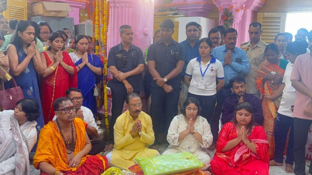 জনতার কলম আগরতলা প্রতিনিধি :-মহানবমীর পবিত্র দিনে আগরতলার ঐতিহাসিক দুর্গাবাড়ি মন্দিরে স্বপরিবারে উপস্থিত হয়ে দেবী দুর্গার আশীর্বাদ গ্রহণ করলেন ত্রিপুরা প্রদেশ বিজেপি সভাপতি তথা সাংসদ রাজীব ভট্টাচার্য্য। দেবী আরাধনার এই শুভ মুহূর্তে মন্দির প্রাঙ্গণ ভক্তদের উপচে পড়া সমাগমে মুখরিত হয়ে উঠেছিল, যা শহরে উৎসবের আমেজকে আরও গাঢ় করেছে।