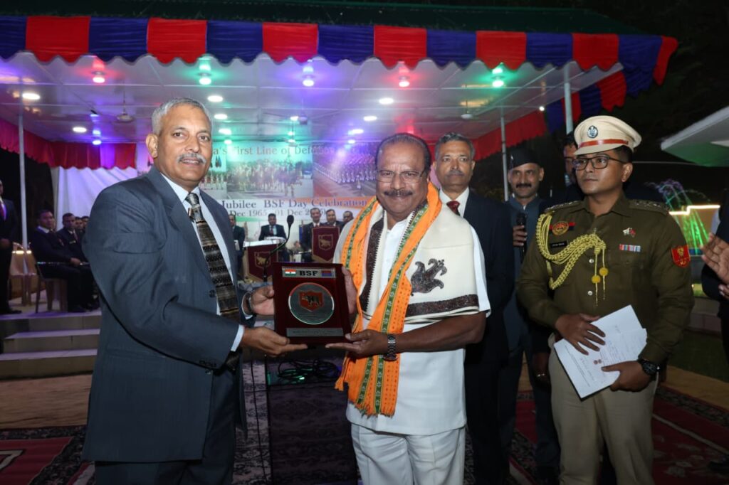 জনতার কলম আগরতলা প্রতিনিধি:- শালবাগানস্থিত বিএসএফ ত্রিপুরা ফ্রন্টিয়ারের প্রধান কার্যালয়ে গতকাল জাঁকজমকপূর্ণ আয়োজনে পালিত হলো সীমান্ত রক্ষী বাহিনীর প্রতিষ্ঠা দিবসের হীরক জয়ন্তী। অনুষ্ঠানে প্রধান অতিথি হিসেবে উপস্থিত ছিলেন রাজ্যপাল ইন্দ্রসেনা রেডি নান্নু।