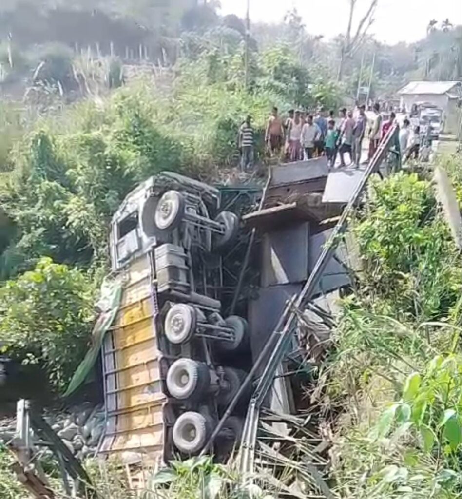 সেতু ভেঙে নিচে পড়লো সিমেন্ট বোঝাই ১২ চাকার লরি
