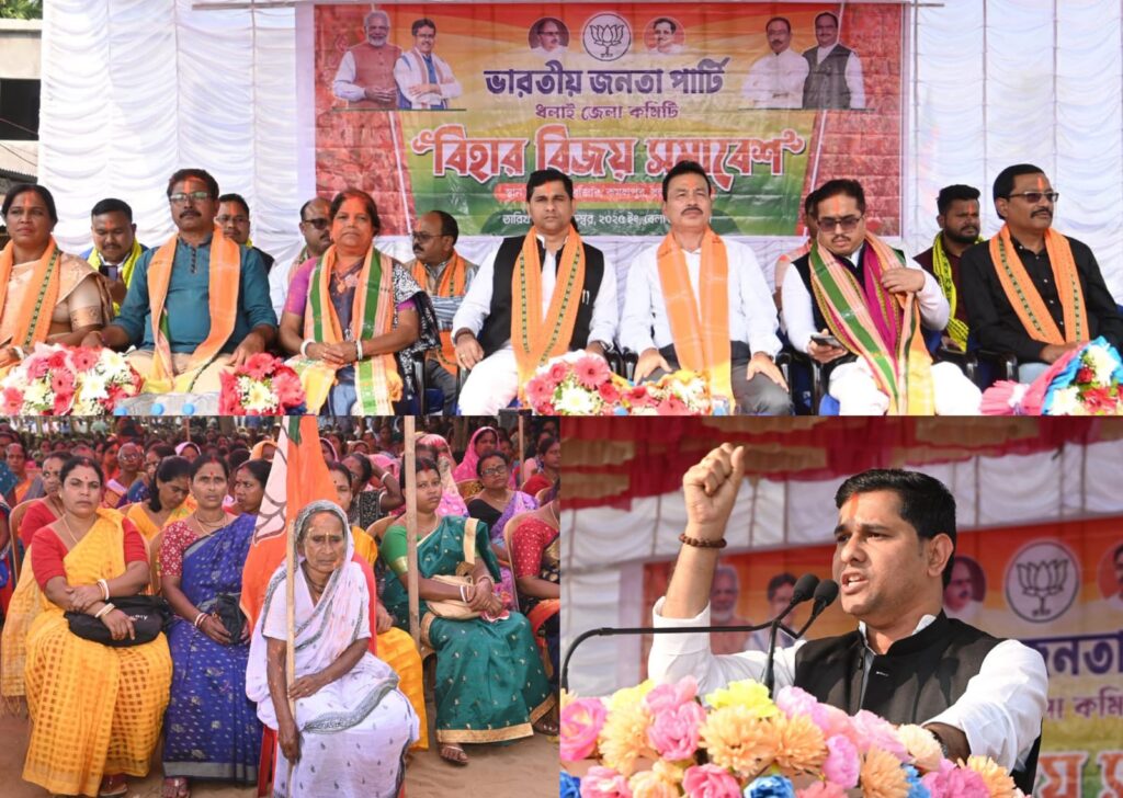 জনতার কলম আগরতলা প্রতিনিধি :-বিহার বিজয়ে ধলাইয়ে উদযাপন, বিজয় সমাবেশে কেন্দ্রের নেতৃত্বের প্রশংসা করলেন মৎস্যমন্ত্রী সুধাংশু দাস।