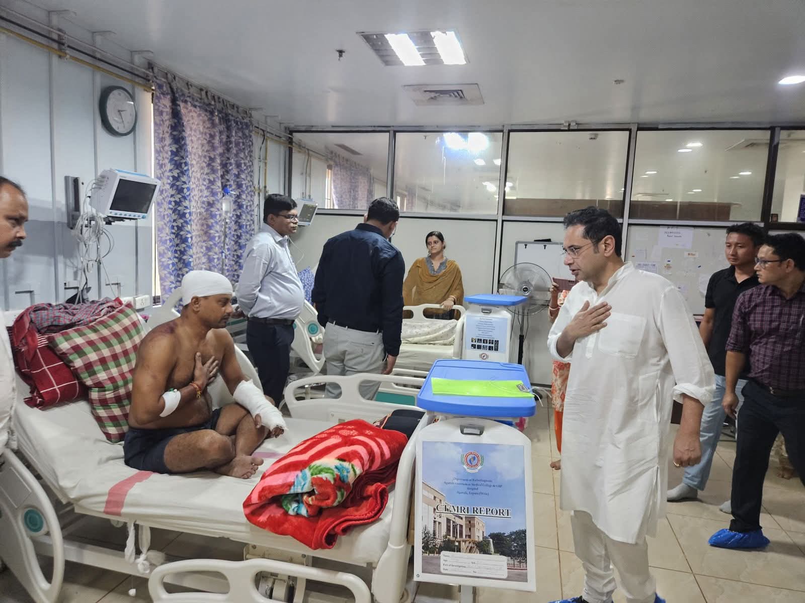 প্রদ্যুত কিশোর মানিক্য ইঞ্জিনিয়ার অনিমেষ সাহা ও তার বড় ভাইকেও দেখতে যান এবং তাদের শারীরিক অবস্থা সম্পর্কে খোঁজ নেন। তিনি বলেন, “যখন মানুষ সহিংসতার পথে পা বাড়ায়, তখন পুরো রাজ্যই ক্ষতিগ্রস্ত হয়। আমি সকল ধরনের সহিংসতা নিন্দা জানাই।”