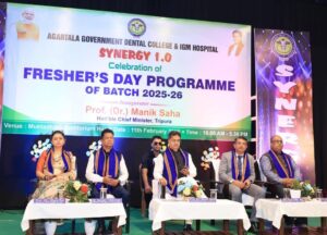 জনতার কলম ত্রিপুরা আগরতলা প্রতিনিধি :- আগরতলার মুক্তধারা অডিটোরিয়ামে আগরতলা গভর্নমেন্ট ডেন্টাল কলেজ ও আইজিএম হাসপাতালের যৌথ উদ্যোগে ২০২৩-২৪ এবং ২০২৪-২৫ শিক্ষাবর্ষের নবাগত ছাত্রছাত্রীদের নবীনবরণ উৎসব ‘সিনারজি-১০’ উদ্‌যাপিত হয়। অনুষ্ঠানের উদ্বোধন করে মুখ্যমন্ত্রী প্রফেসর (ডা.) মানিক সাহা বলেন, একজন চিকিৎসককে প্রতিনিয়ত ব্যবহারিক অভিজ্ঞতার মধ্য দিয়ে নিজেকে গড়ে তুলতে হয়। যত বেশি চ্যালেঞ্জ গ্রহণ করা যায়, ততই একজন চিকিৎসক অভিজ্ঞ ও দক্ষ হয়ে ওঠেন।