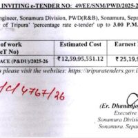 জনতার কলম ত্রিপুরা আগরতলা প্রতিনিধি :- ফটিকরায়ের ইন্দিরা কলোনী থেকে সায়দাবাড়ি পর্যন্ত মনু নদীর উপর নির্মীয়মাণ পাকা সেতুর কাজ পরিদর্শন করলেন ত্রিপুরা সরকারের মৎস্য মন্ত্রী সুধাশু দাস। প্রায় ২ কোটি ৮০ লক্ষ টাকা ব্যয়ে নির্মিত এই সেতুর কাজ বর্তমানে দ্রুতগতিতে এগিয়ে চলছে।