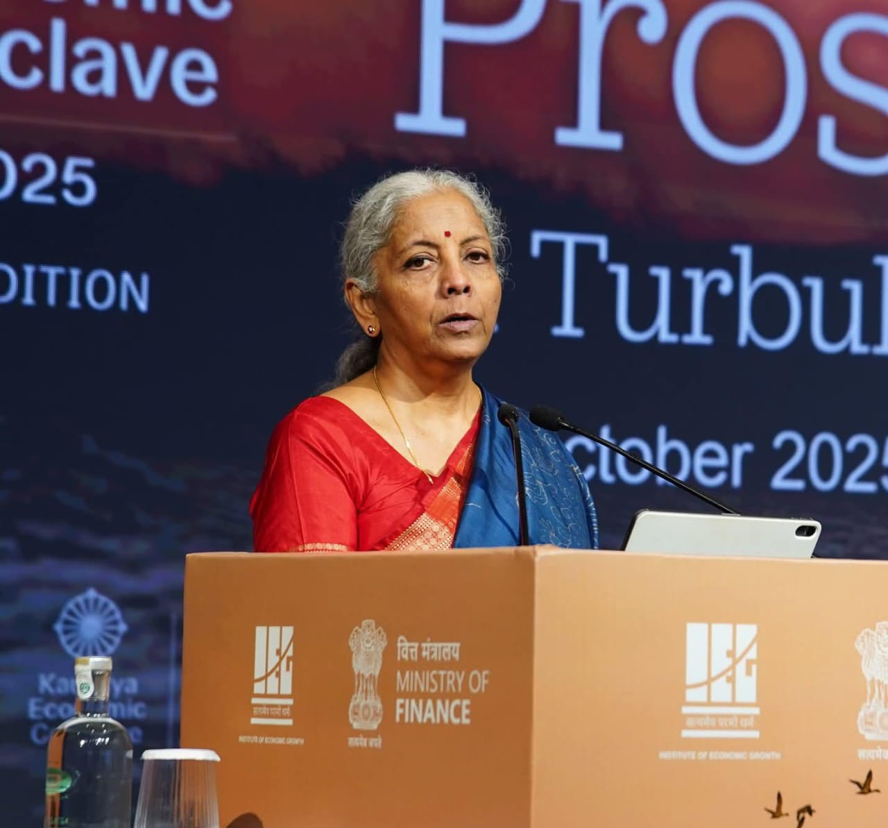 জনতার কলম ওয়েবডেস্ক :- কেন্দ্রীয় অর্থমন্ত্রী নির্মলা সীতারামন আজ ‘বিকসিত ভারত’ লক্ষ্যে পৌঁছাতে দেশের জিডিপি প্রবৃদ্ধি ৮ শতাংশে উন্নীত করার প্রয়োজনীয়তার ওপর জোর দিয়েছেন। আজ নয়াদিল্লিতে অনুষ্ঠিত ‘কৌটিল্য ইকোনমিক কনক্লেভ’-এর উদ্বোধনী অধিবেশনে বক্তব্য রাখতে গিয়ে তিনি বলেন, ভারতের অর্থনীতি দৃঢ় ও টেকসই গতিতে এগোচ্ছে এবং বৈশ্বিক ধাক্কা সামাল দেওয়ার ক্ষমতাও যথেষ্ট শক্তিশালী। তিনি উল্লেখ করেন, বৈশ্বিক অস্থিরতার মধ্যেও দেশের অর্থনৈতিক প্রবৃদ্ধি অভ্যন্তরীণ উপাদানের উপর মজবুতভাবে ভিত্তি করে এগিয়ে চলেছে।