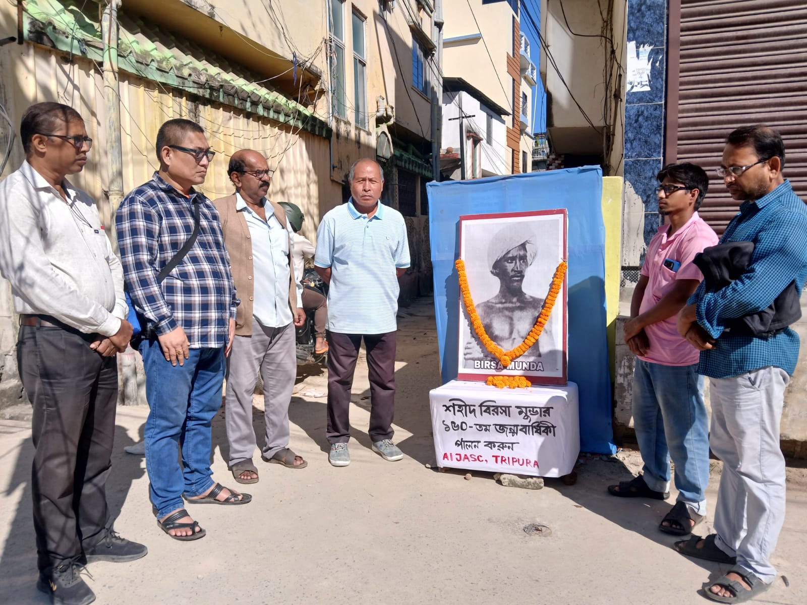 জনতার কলম আগরতলা প্রতিনিধি :-আদিবাসী কৃষক বিদ্রোহ ‘উলগুলান’-এর মহানায়ক, জল–জঙ্গল–জমির অধিকার রক্ষার পথিকৃৎ শহীদ বিরসা মুন্ডার ১৫১তম জন্মদিবস উপলক্ষে সারা দেশের মতো ত্রিপুরাতেও পালিত হলো শ্রদ্ধাঞ্জলি অনুষ্ঠান। শুক্রবার সকালে আগরতলার কর্ণেল চৌমুহনীতে ‘অল ইন্ডিয়া জন অধিকার সুরক্ষা কমিটি’র রাজ্য শাখার উদ্যোগে এই স্মরণসভা অনুষ্ঠিত হয়।