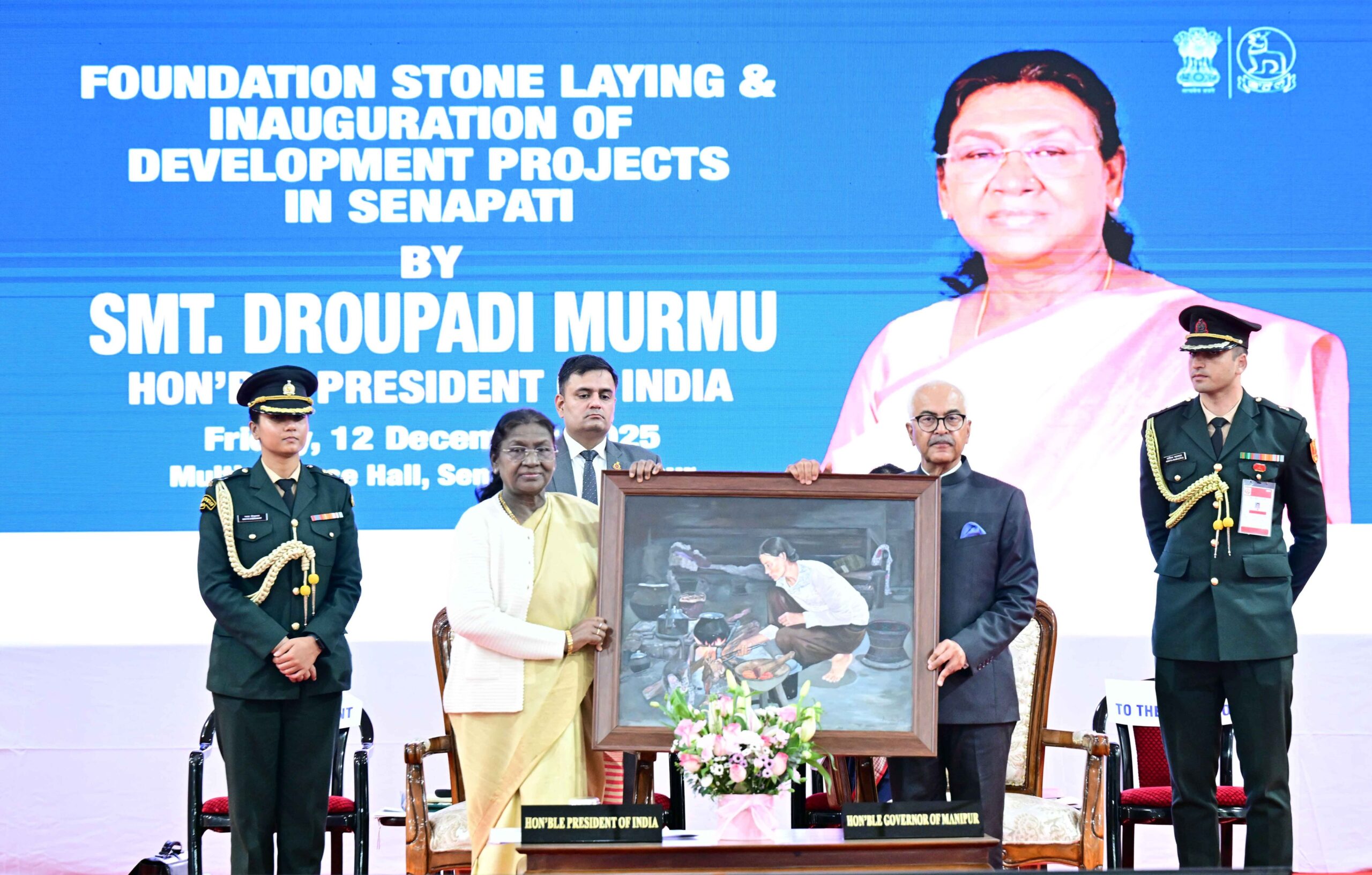জনতার কলম ওয়েবডেস্ক :- মণিপুরের সেনাপতি জেলায় এক জনসভায় যোগ দিয়ে একাধিক উন্নয়ন প্রকল্পের ভিত্তিপ্রস্তর স্থাপন ও উদ্বোধন করলেন রাষ্ট্রপতি দ্রৌপদী মুর্মু। বিভিন্ন জনমুখী প্রকল্পের মাধ্যমে রাজ্যের অবকাঠামো উন্নয়নে কেন্দ্রের প্রতিশ্রুতি পুনরায় তুলে ধরেন তিনি।