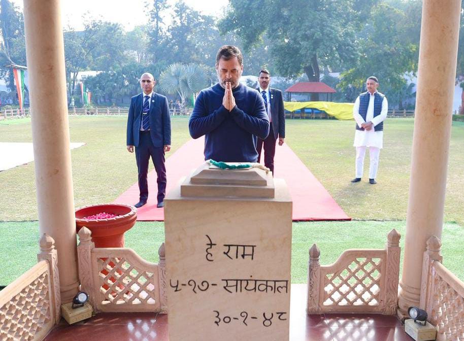 জনতার কলম ওয়েবডেস্ক :- শহিদ দিবস উপলক্ষে লোকসভার বিরোধী দলনেতা রাহুল গান্ধী শুক্রবার নয়াদিল্লির তিস জানুয়ারি মার্গে মহাত্মা গান্ধীর স্মৃতিসৌধে পুষ্পার্ঘ্য অর্পণ করে শ্রদ্ধা নিবেদন করেন। জাতির জনক মহাত্মা গান্ধীর ৭৮তম প্রয়াণবার্ষিকীতে তাঁকে স্মরণ করে এই শ্রদ্ধার্ঘ্য জ্ঞাপন করা হয়।