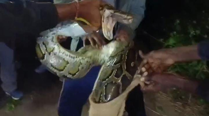 জনতার কলম আগরতলা প্রতিনিধি :- সোমবার রাতে চড়িলাম ফরেস্ট রেঞ্জ অফিস সংলগ্ন পুরানবাড়ি এলাকায় এক মস্তবড় অজগর সাপকে ঘিরে ব্যাপক চাঞ্চল্যের সৃষ্টি হয়। স্থানীয় বিনয় কর্মকারের পুকুরপাড়ে বাজার থেকে বাড়ি ফেরা কয়েকজন পথচারী প্রথমে সাপটিকে দেখতে পেয়ে চিৎকার শুরু করলে মুহূর্তেই এলাকাজুড়ে উত্তেজনা ছড়িয়ে পড়ে।