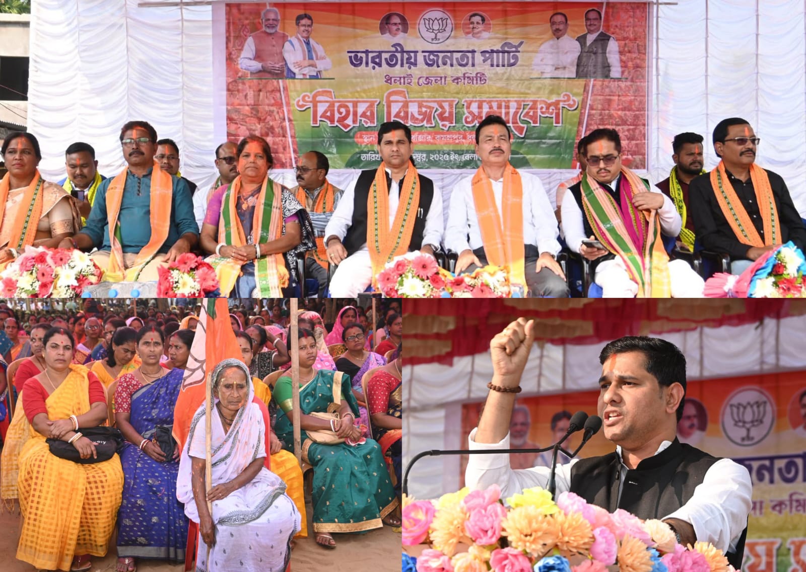 বিহার বিধানসভা নির্বাচনে এনডিএ-র ঐতিহাসিক জয়ের আনন্দে মুখর হল ত্রিপুরার ধলাই। শনিবার ভারতীয় জনতা পার্টি ধলাই জেলা কমিটির উদ্যোগে হালাহালি বাজারে আয়োজন করা হয় ‘বিহার বিজয় সমাবেশ’, যেখানে উপস্থিত ছিলেন ত্রিপুরা সরকারের মৎস্যমন্ত্রী সুধাংশু দাস।