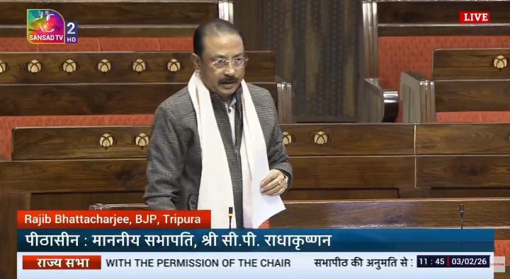 জনতার কলম ওয়েবডেস্ক :- মঙ্গলবার রাজ্যসভায় ত্রিপুরার গুরুত্বপূর্ণ সড়ক পরিকাঠামো নিয়ে তীব্র উদ্বেগ প্রকাশ করলেন বিজেপির প্রদেশ সভাপতি ও রাজ্যসভা সাংসদ রাজীব ভট্টাচার্য। তিনি NH-8 (মুঙ্গিয়াকামি–আম্বাসা), NH-108B, NH-208B এবং NH-208A সহ একাধিক জাতীয় সড়কের বেহাল অবস্থার কথা তুলে ধরেন।