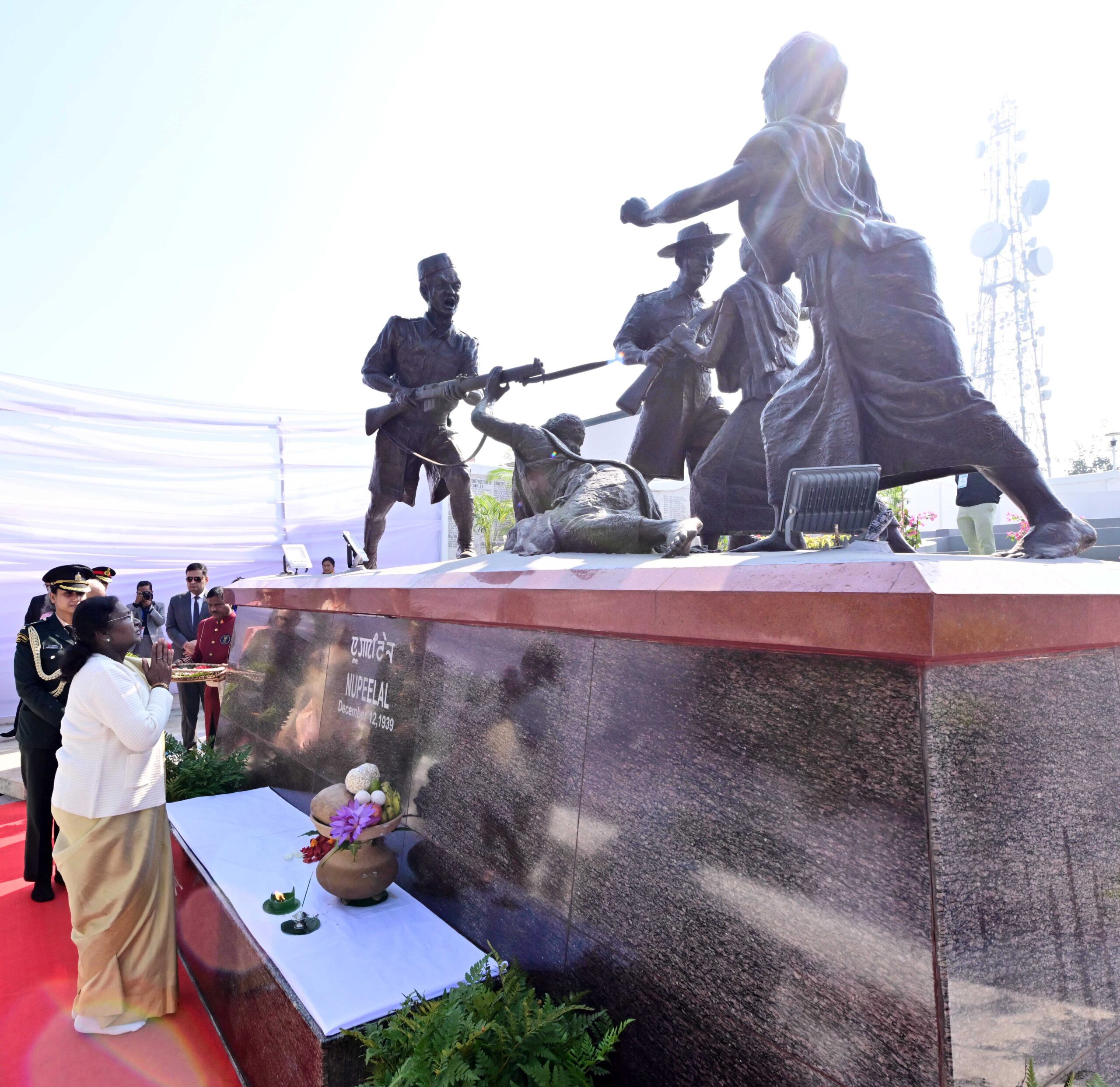 রাষ্ট্রপতি মুর্মু নুপি লাল স্মারকে শ্রদ্ধা জানিয়ে মণিপুরের সাহসী নারীযোদ্ধাদের প্রতি গভীর শ্রদ্ধা নিবেদন করেন, যাদের অদম্য সাহস আজও প্রজন্মকে অনুপ্রাণিত করে। তাঁর সঙ্গে উপস্থিত রাজ্যপাল অজয় কুমার ভল্লাও স্মারকে পুষ্পার্পণ করেন। এরপর তাঁরা স্মারক থেকে প্রায় দুই কিলোমিটার দূরে অবস্থিত প্যালেস কমপাউন্ডের শ্রী গোবিন্দজি মন্দিরেও প্রার্থনা করেন।