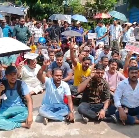আউট সোর্সিং কর্মীদের বঞ্চনার বিরুদ্ধে প্রতিবাদ, বিদ্যুৎ নিগম ভবনের সামনে পথ অবরোধ