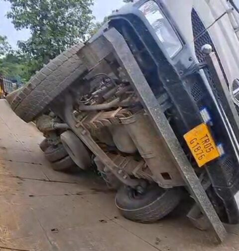 পাথর বোঝাই অভারলোড ট্রাক ব্রীজ ভেঙ্গে বিপত্তি বৈষ্ণবপুরে